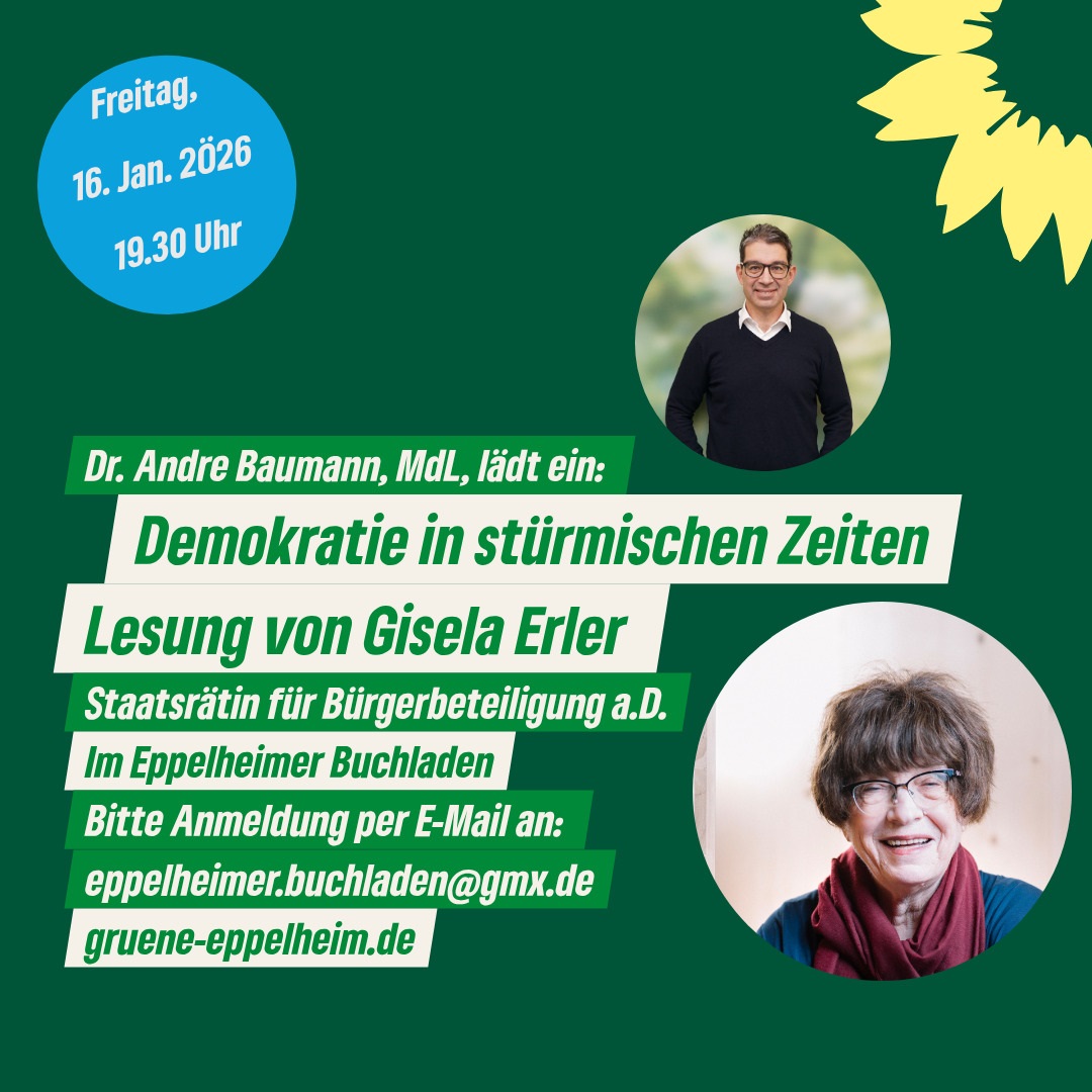 „Demokratie in stürmischen Zeiten“ – Lesung von Gisela Erler, Staatsrätin für Bürgerbeteiligung a.D.